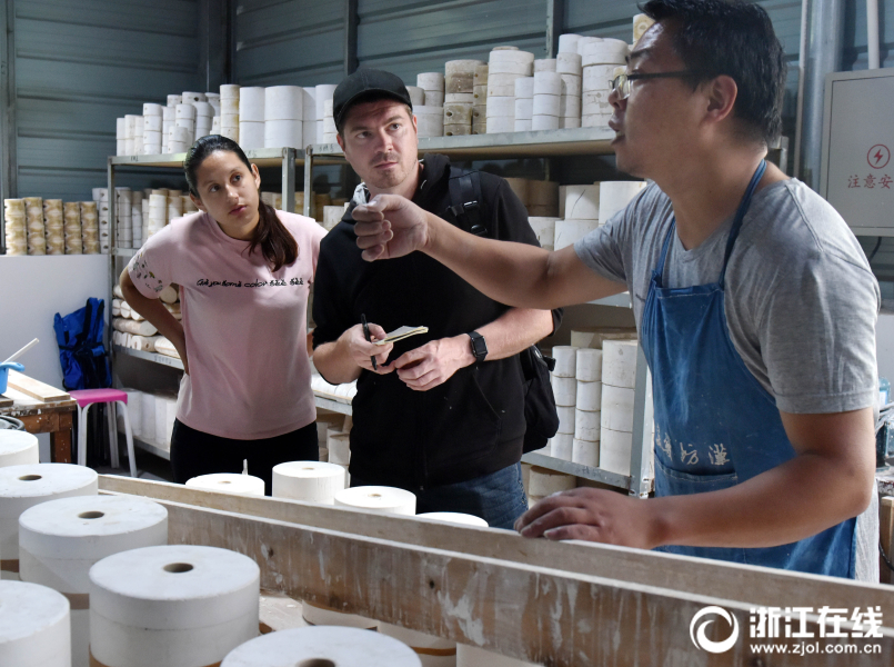 2018年6月3日,來自30多個國家的70多名留學(xué)生,在武義漢坊婺窯認(rèn)真學(xué)習(xí)修坯、上釉等環(huán)節(jié)。