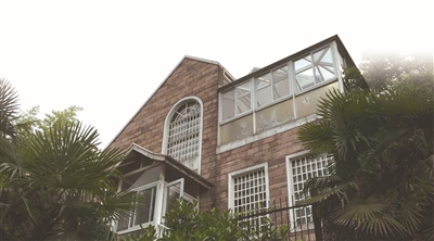 從整體上看,這棟房屋因長(zhǎng)時(shí)間沒人居住,顯露出衰敗跡象。從鐵門可以看見院內(nèi)臺(tái)階上的縫隙間長(zhǎng)出不少野生植物,最高的一棵有一米左右。二樓窗框及屋頂煙囪都有破損痕跡。