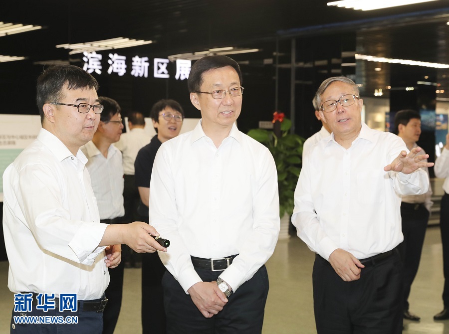 新華社天津6月20日電? 中共中央政治局常委、國(guó)務(wù)院副總理韓正6月19日在天津市調(diào)研京津冀協(xié)同發(fā)展工作。韓正前往天津市規(guī)劃展覽館,聽取天津市總體規(guī)劃及有關(guān)綠色生態(tài)屏障和濕地保護(hù)情況匯報(bào);到科大訊飛人工智能產(chǎn)業(yè)示范基地,了解天津市加快建設(shè)全國(guó)先進(jìn)制造研發(fā)基地和發(fā)展智能產(chǎn)業(yè)情況,察看企業(yè)在機(jī)器翻譯、智慧醫(yī)療、智慧教育等領(lǐng)域的最新研發(fā)成果;到天津?yàn)I海-中關(guān)村科技園,調(diào)研園區(qū)建設(shè)和企業(yè)落戶等情況,與入駐園區(qū)的企業(yè)職工互動(dòng)交流;考察天津深之藍(lán)水下新視界科技有限公司、零氪科技(天津)有限公司,了解企業(yè)自主創(chuàng)新發(fā)展情況。