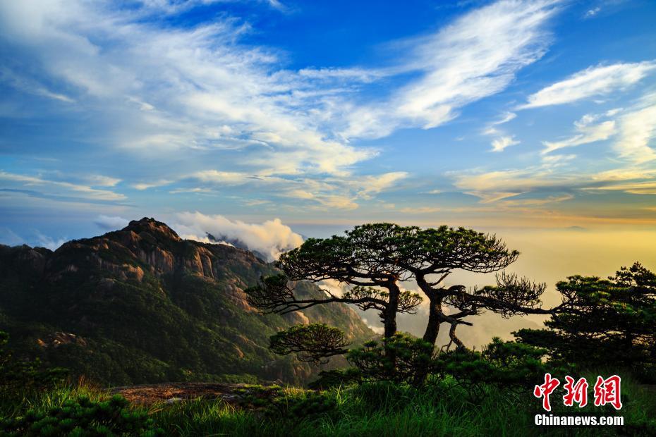 6月29日傍晚,安徽黃山風(fēng)景區(qū)雨后出現(xiàn)云海和晚霞景觀,宛如壯麗畫卷。中新社發(fā) 方立華 攝