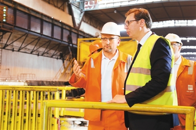 塞爾維亞總統(tǒng)武契奇7月5日出席河鋼塞爾維亞有限公司為正式接管斯梅代雷沃鋼鐵廠兩周年舉行的慶典時(shí)表示,中國(guó)公司的收購(gòu)讓該廠獲得成功和進(jìn)步。斯梅代雷沃鋼鐵廠成立于1913年,曾一度面臨倒閉。2016年,中國(guó)河鋼集團(tuán)收購(gòu)該廠。當(dāng)年底,實(shí)現(xiàn)盈利。圖為武契奇(右)視察河鋼塞爾維亞有限公司。新華社記者 王慧娟攝