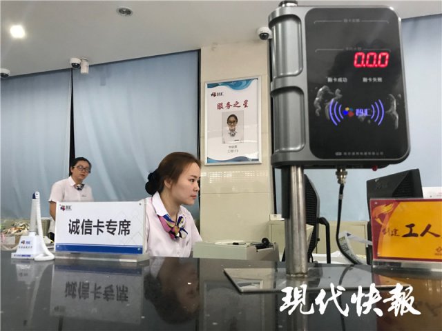現(xiàn)代快報(bào)記者看到,周萍將市民卡交到營(yíng)業(yè)人員手中,經(jīng)過(guò)核驗(yàn),確認(rèn)她為民政部門(mén)報(bào)送的"誠(chéng)實(shí)守信好市民",點(diǎn)擊升級(jí),不到1分鐘,有著就醫(yī)、乘車(chē)等功能的市民卡,就變身為"市民誠(chéng)信卡"。