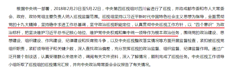中央第四巡視組向四川省委反饋巡視情況,圖為中央紀(jì)委國家監(jiān)委網(wǎng)站發(fā)布消息部分截圖。