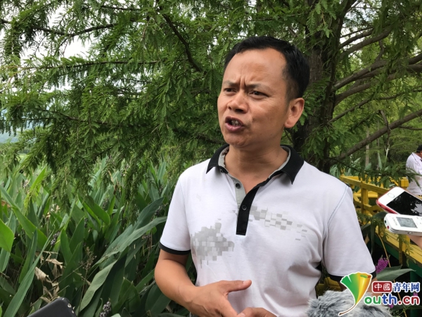 李潤(rùn)榮向記者介紹茈碧湖環(huán)境治理和幫扶貧困戶(hù)情況。中國(guó)青年網(wǎng)記者 張瑞宇攝