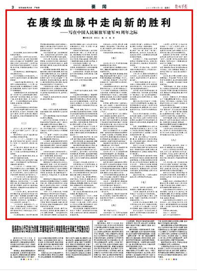 2018,八一。當(dāng)歷史的時針指向這個神圣光榮的日子,讓我們回望那光耀千秋的偉大征程,銘記歷史、不忘初心、牢記使命、不懈奮斗,確保人民軍隊血脈永續(xù)、根基永固、優(yōu)勢永存,不斷書寫強國強軍更為輝煌的篇章!請關(guān)注今日出版的《解放軍報》的文章——
