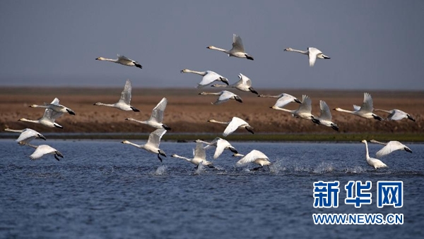 這是在東洞庭湖國(guó)家級(jí)自然保護(hù)區(qū)內(nèi)拍攝到的小天鵝(2017年3月1日攝)。新華社記者 李尕 攝