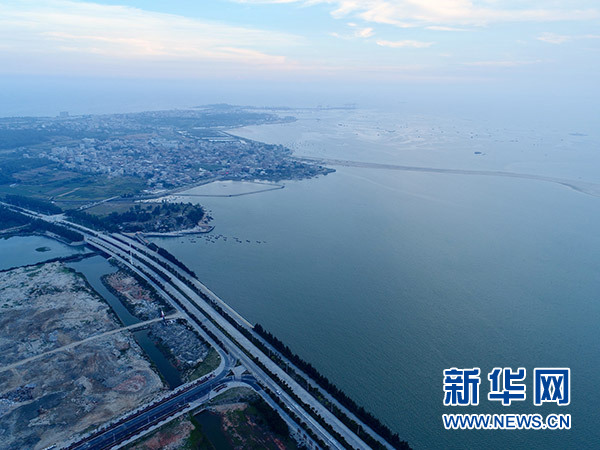 這是8月4日拍攝的福建向金門供水工程輸水管道出??跁x江圍頭灣(無(wú)人機(jī)拍攝)。新華社記者 姜克紅 攝