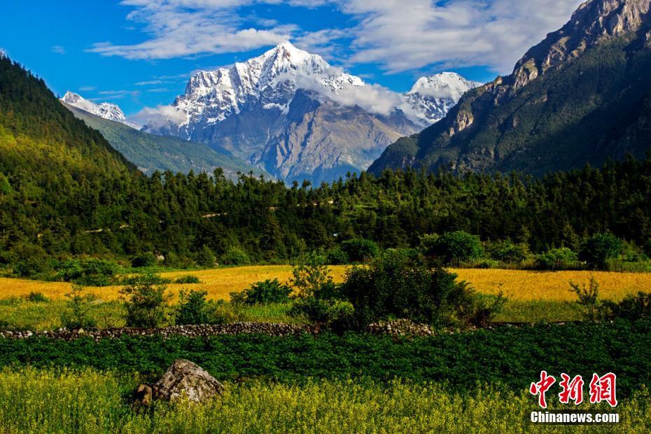 吉隆溝給人最大的感受是驚訝于造物的神奇,讓四季并存在這狹小的山谷間。峽谷綠樹成蔭,恬靜的村莊被綠樹環(huán)抱著,不遠處能清楚地看見若隱若現(xiàn)的雪山。 楊建 攝
