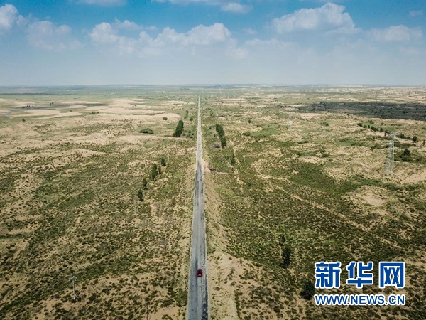公路在延伸,綠色在鋪展,大漠深處崛起了一道“綠色長廊”。修路與治沙、治窮聯(lián)結(jié)成一體,“死亡之海”由此變成了“希望之?!?。