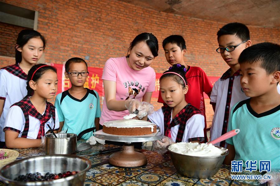 志愿者教孩子們學(xué)習(xí)烘焙
