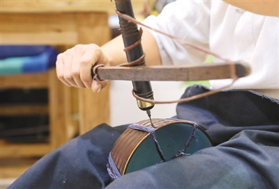 河北省非物質(zhì)文化遺產(chǎn)項目代表性傳承人李軍航用金剛鉆為殘破瓷器打孔。梁子棟攝(新華社發(fā))