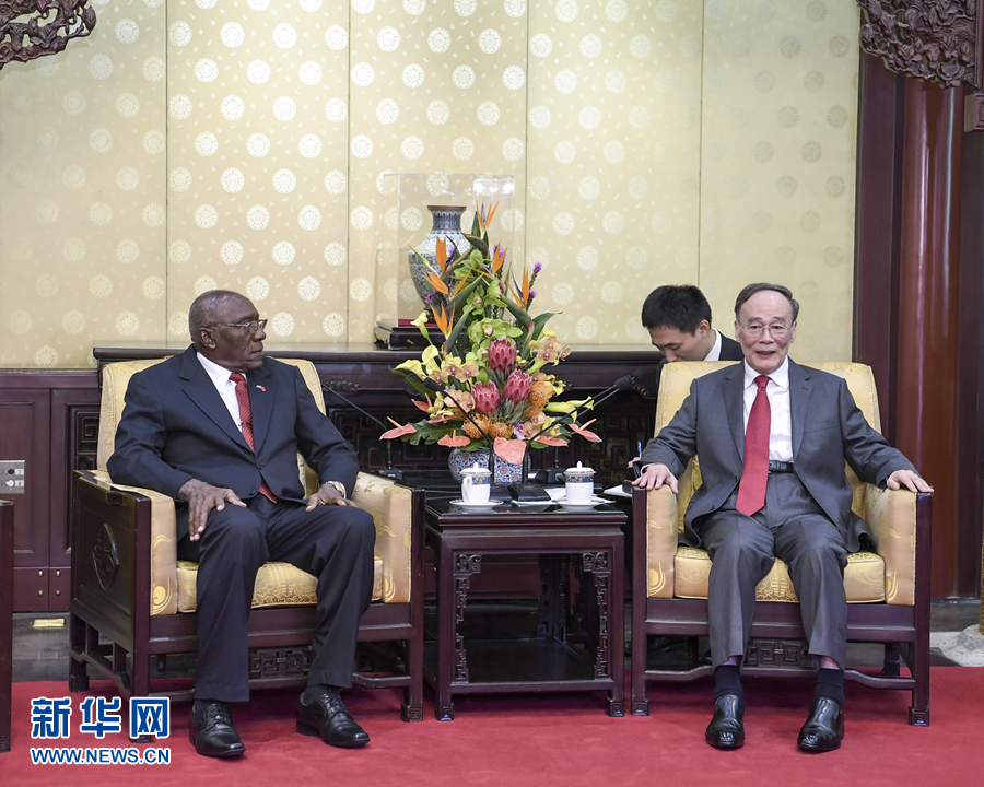 9月7日,國(guó)家副主席王岐山在北京釣魚(yú)臺(tái)國(guó)賓館會(huì)見(jiàn)古巴國(guó)務(wù)委員會(huì)第一副主席兼部長(zhǎng)會(huì)議第一副主席巴爾德斯。 新華社記者高潔 攝