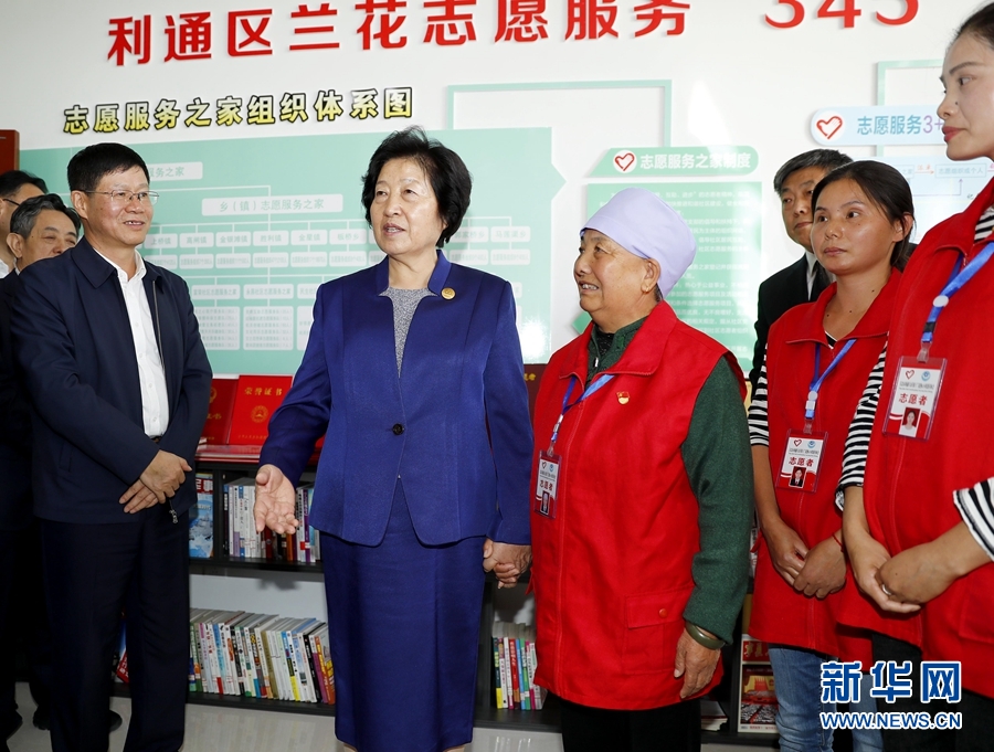 9月21日,中共中央政治局委員、國務院副總理、中央代表團副團長孫春蘭率中央代表團二分團,帶著以習近平同志為核心的黨中央的親切關懷和全國人民的深情厚誼,在吳忠看望慰問各族各界干部群眾,共同慶祝寧夏回族自治區(qū)成立60周年。這是孫春蘭在吳忠市利通區(qū)勝利鎮(zhèn)永昌社區(qū)了解民族團結進步示范社區(qū)創(chuàng)建情況。 新華社記者 陳建力 攝