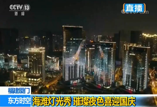 廈門夜景最絢麗的地方,這里的二十幾棟大樓,每天晚上都會變身燈光秀的舞臺。不過國慶期間和平日還是有所不同,為慶祝國慶進行了特別的設(shè)計和修改。