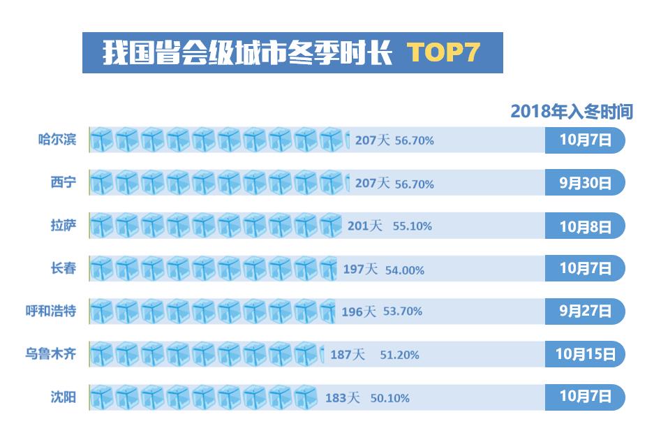 圖為我國省會(huì)級(jí)城市冬季時(shí)長前7名以及2018年入冬日期。王若嘉 制圖