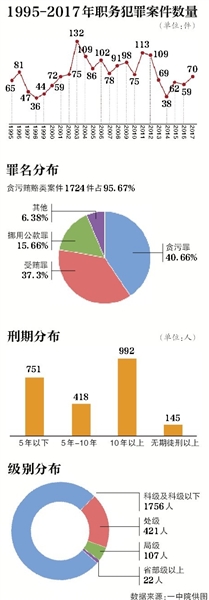 昨天上午,北京一中院發(fā)布《1995年-2018年職務(wù)犯罪白皮書(shū)》(以下簡(jiǎn)稱(chēng)白皮書(shū))。作為承擔(dān)了北京近四成的職務(wù)犯罪審判任務(wù)的法院,23年來(lái),一中院通過(guò)審理的1800余件職務(wù)犯罪案件,總結(jié)出了該類(lèi)案件的主要特征和發(fā)展趨勢(shì)。近年來(lái),職務(wù)犯罪中“小官”犯罪占比較高、犯罪行為時(shí)間跨度平均為7年,“初犯”低齡化職務(wù)犯罪特征初顯等。