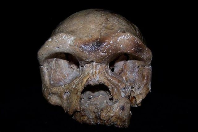 陜西出土的大荔人的顱骨。圖片中國科學(xué)院古脊椎動(dòng)物與古人類所提供