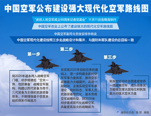 圖表:中國(guó)空軍公布建設(shè)強(qiáng)大現(xiàn)代化空軍路線(xiàn)圖 新華社記者 陳琛 編制