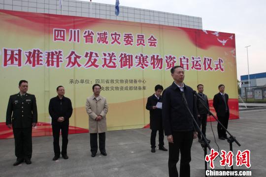 2018年冬向四川全省受災困難群眾發(fā)送御寒物資啟運儀式,11月23日上午在四川省救災物資儲備中心舉行。