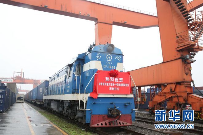 11月26日,中歐班列(渝新歐)首次較大規(guī)模郵件進(jìn)口測試圓滿成功。圖為中歐班列(渝新歐)抵達(dá)重慶。新華網(wǎng)發(fā)(朱亞坤 攝)