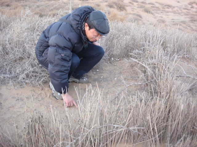 劉永定在沙漠調(diào)查藻類(lèi)生物結(jié)皮。(受訪者供圖)