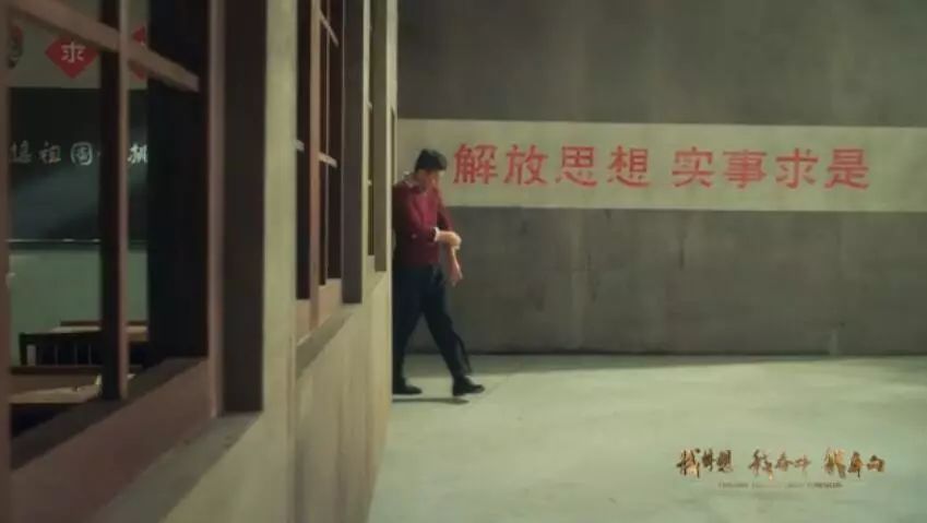 ??? 片中人們喜迎大會,共同分享這一紀念性的時刻,我們看到的背景墻上寫著“解放思想,實事求是”體現(xiàn)了時代精神。警察、郵遞員、工廠女工、老人、學(xué)生和年輕人的服裝,按照當(dāng)年的樣式進行還原,并且全部進行重新制作,完全還原了當(dāng)時的場景。