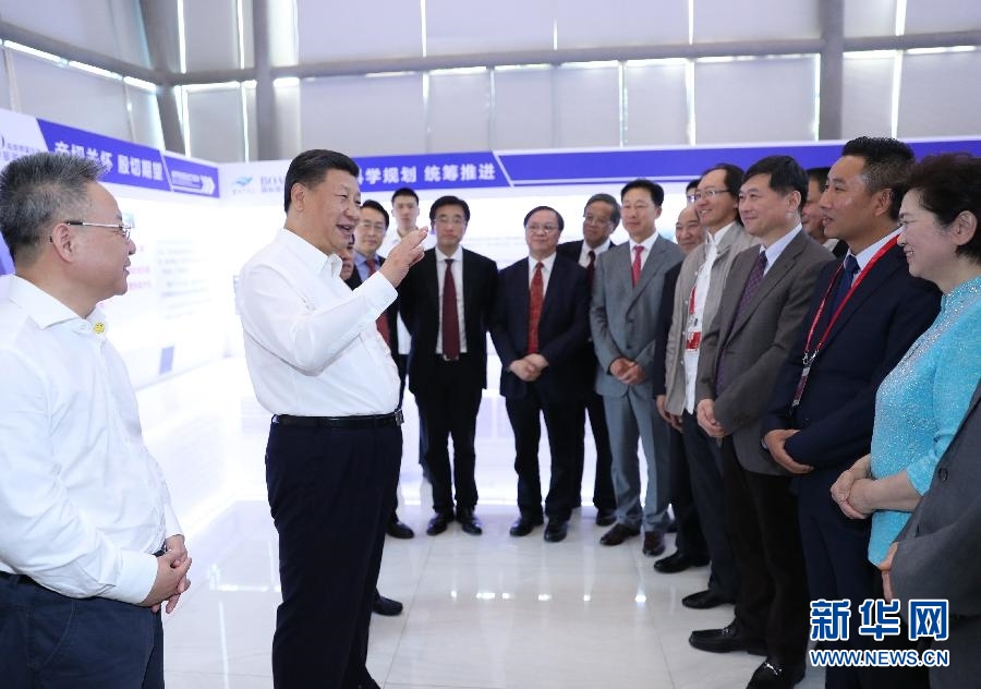 6月12日,習近平在青島海洋科學與技術試點國家實驗室,同科研人員親切交談。?新華社記者 李學仁 攝