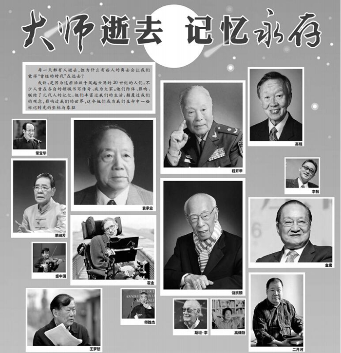 2018年,離我們而去的名人似乎有點(diǎn)多,霍金、饒宗頤、李敖、程開甲、單田芳、金庸、二月河……一個(gè)個(gè)熟悉名字的遠(yuǎn)去,讓很多人內(nèi)心涌起陣陣離別的惆悵。