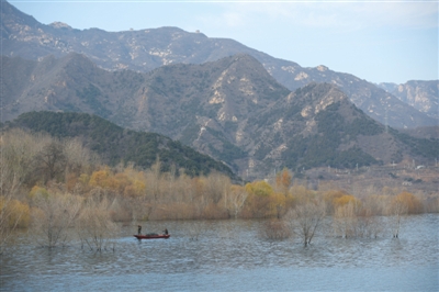 2017年11月19日,密云水庫(kù)蓄水量達(dá)20億立方米,岸邊原先的樹(shù)木都已被淹沒(méi)。在北京5個(gè)市級(jí)地表飲用水水源地中,密云水庫(kù)是唯一供水水源。資料圖片/新京報(bào)記者 侯少卿 攝