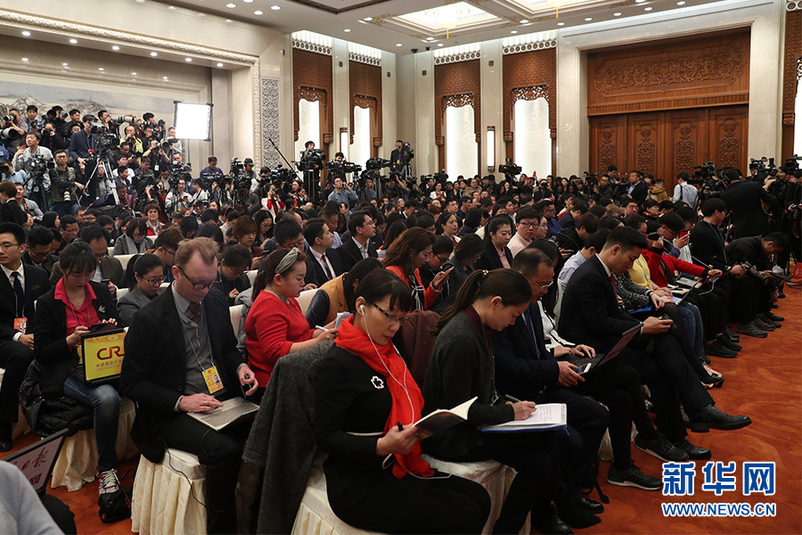 3月4日,十三屆全國(guó)人大一次會(huì)議在人民大會(huì)堂新聞發(fā)布廳舉行新聞發(fā)布會(huì),由大會(huì)發(fā)言人就大會(huì)議程和人大工作相關(guān)的問(wèn)題回答中外記者的提問(wèn)。圖為新聞發(fā)布會(huì)現(xiàn)場(chǎng)記者。新華網(wǎng)/中國(guó)政府網(wǎng) 翟子赫 攝