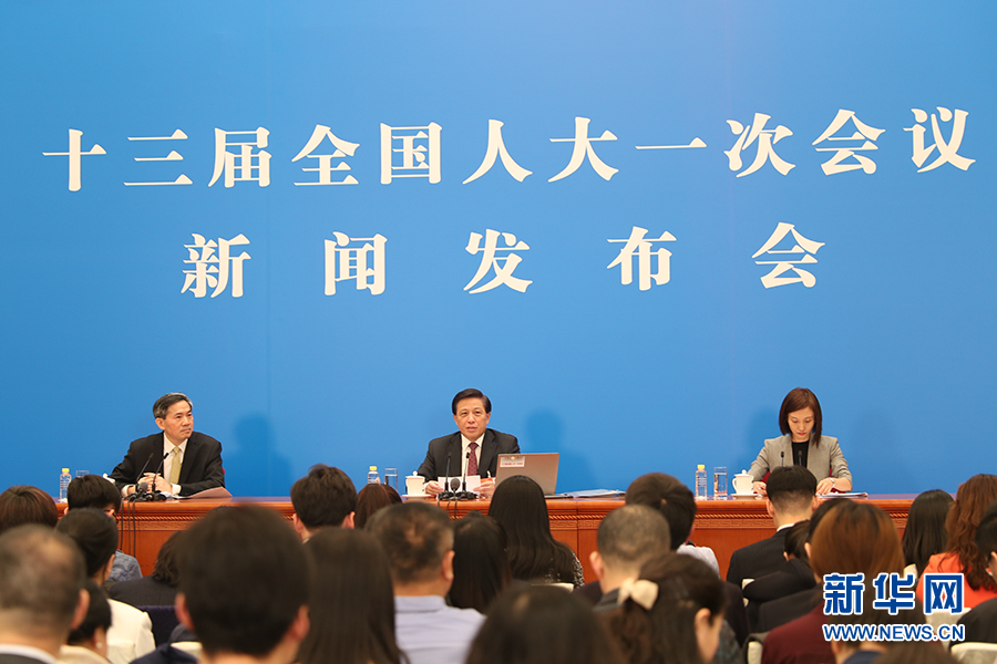 3月4日,十三屆全國人大一次會議在人民大會堂新聞發(fā)布廳舉行新聞發(fā)布會,由大會發(fā)言人張業(yè)遂就大會議程和人大工作相關(guān)的問題回答中外記者的提問。圖為大會發(fā)言人回答中外記者提問。新華網(wǎng)/中國政府網(wǎng) 陳杰 攝