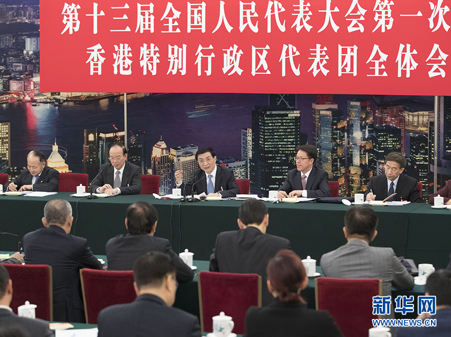 3月6日,中共中央政治局常委、中央書記處書記王滬寧參加十三屆全國人大一次會議香港代表團的審議。