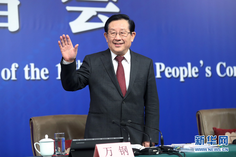 十三屆全國人大一次會(huì)議新聞中心于10日上午10時(shí)45分在梅地亞中心多功能廳舉行記者會(huì),邀請(qǐng)科技部部長萬鋼、政策法規(guī)與監(jiān)督司司長賀德方、創(chuàng)新發(fā)展司司長許倞就“加快建設(shè)創(chuàng)新型國家”相關(guān)問題回答中外記者提問。圖為萬鋼向記者示意。新華網(wǎng)/中國政府網(wǎng) 翟子赫 攝