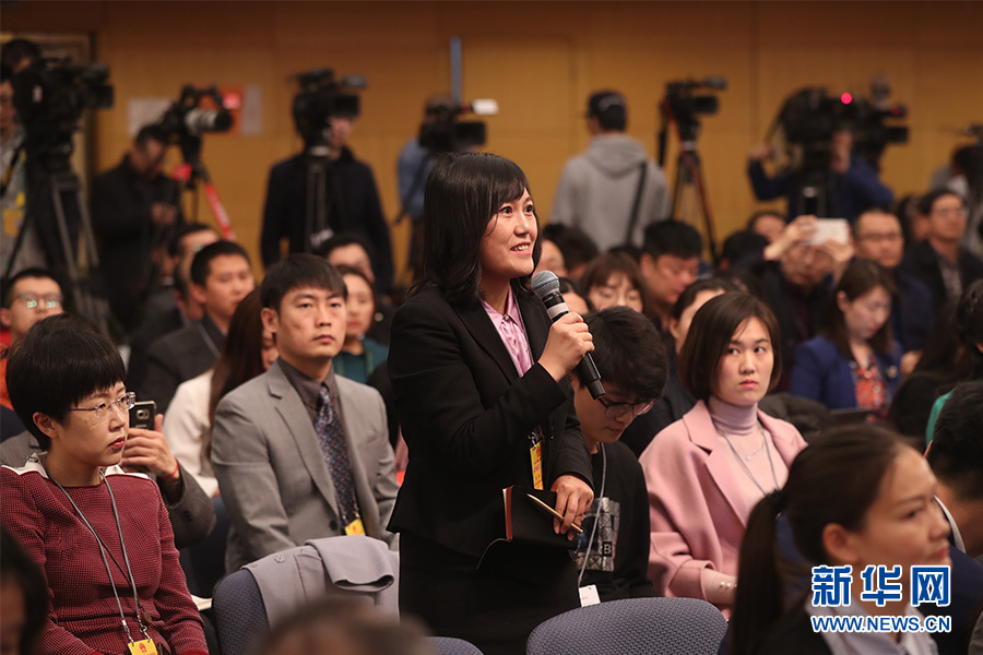 十三屆全國人大一次會議新聞中心3月17日(星期六)15時在梅地亞中心多功能廳舉行記者會,邀請環(huán)保部部長李干杰就“打好污染防治攻堅戰(zhàn)”相關(guān)問題回答中外記者提問。圖為中央人民廣播電臺、央廣網(wǎng)記者提問。新華網(wǎng)/中國政府網(wǎng) 曲植 攝