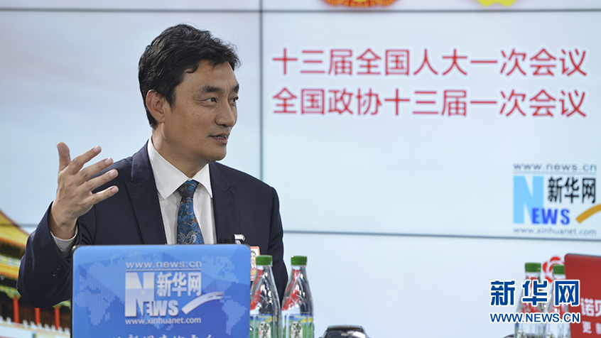 圖為18日,全國(guó)人大代表,云南省曲靖市委副書(shū)記、市長(zhǎng)董保同做客新華網(wǎng)2018全國(guó)兩會(huì)特別訪談。新華網(wǎng) 李相博攝