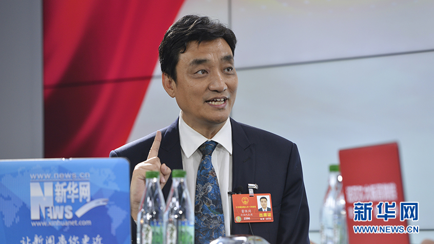 圖為18日,全國(guó)人大代表,云南省曲靖市委副書記、市長(zhǎng)董保同做客新華網(wǎng)2018全國(guó)兩會(huì)特別訪談。新華網(wǎng) 李相博攝