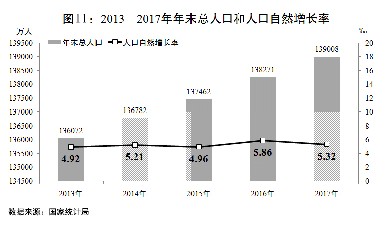 三是基本公共服務(wù)體系進(jìn)一步完善?!笆濉蓖七M(jìn)基本公共服務(wù)均等化規(guī)劃出臺,國家基本公共服務(wù)清單制度開始建立。九年義務(wù)教育鞏固率93.8%,高中階段教育毛入學(xué)率88.3%,財政性教育經(jīng)費(fèi)支出占國內(nèi)生產(chǎn)總值比例繼續(xù)超過4%。全部三級公立醫(yī)院參加醫(yī)聯(lián)體建設(shè),每千人口醫(yī)療衛(wèi)生機(jī)構(gòu)床位數(shù)達(dá)到5.66張。公共文化服務(wù)保障法正式實(shí)施,以縣為單位加快落實(shí)國家基本公共文化服務(wù)指導(dǎo)標(biāo)準(zhǔn)和省級實(shí)施標(biāo)準(zhǔn)。全民健身指南發(fā)布,“十三五”國家老齡事業(yè)發(fā)展和養(yǎng)老體系建設(shè)規(guī)劃印發(fā)實(shí)施。加強(qiáng)社會兜底保障,困難殘疾人生活補(bǔ)貼和重度殘疾人護(hù)理補(bǔ)貼受益人數(shù)均超過1000萬,近6000萬低保人員和特殊困難群眾基本生活得到有效保障,農(nóng)村留守兒童關(guān)愛保護(hù)體系全面構(gòu)建,近50萬孤兒和艾滋病毒感染兒童納入政府保障。全面兩孩政策持續(xù)推進(jìn),全年出生人口1723萬人,年末總?cè)丝?3.9億人,人口自然增長率為5.32‰。