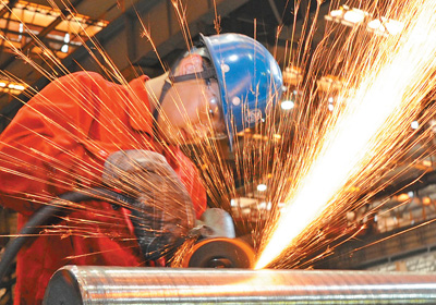 圖為遼寧大連特殊鋼制品有限公司員工在檢查修磨大棒材產(chǎn)品。劉德斌(人民視覺)