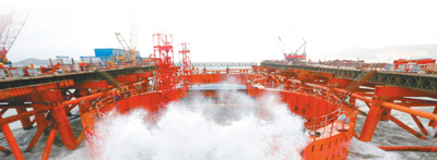 圖為施工中的平潭海峽公鐵兩用大橋。人民視覺
