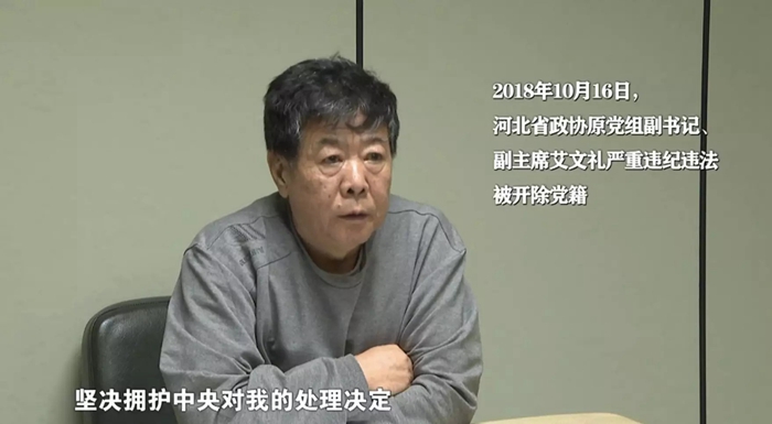 艾文禮:“呼吁像我這樣問題的同志,不要再有僥幸心理,趕快主動投案自首。”