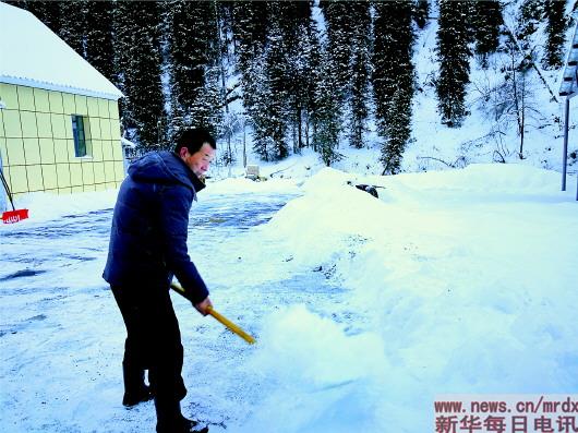 觀測員王海存在積雪雪崩研究站清雪。李曉玲攝
