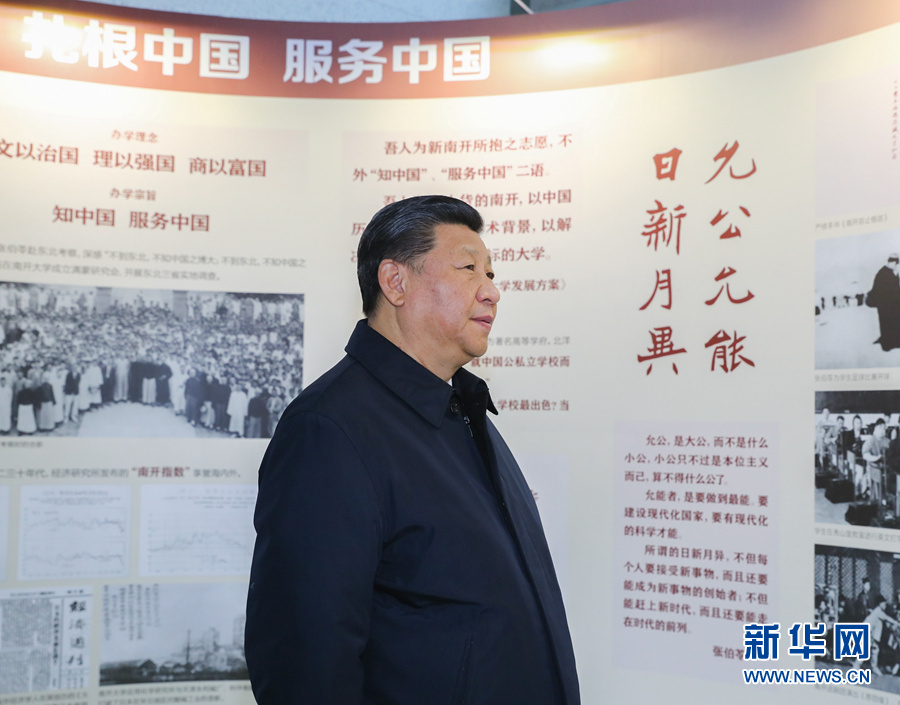 1月16日至18日,中共中央總書記、國家主席、中央軍委主席習(xí)近平在京津冀考察,主持召開京津冀協(xié)同發(fā)展座談會并發(fā)表重要講話。這是1月17日上午,習(xí)近平在天津南開大學(xué)參觀校史展覽。 新華社記者 謝環(huán)馳 攝
