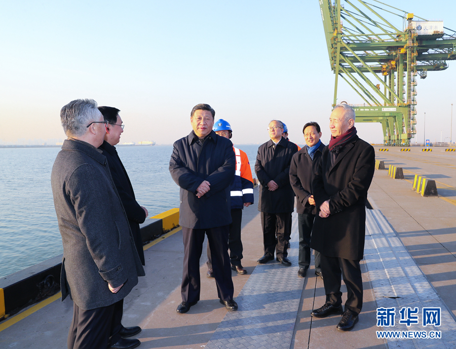 1月16日至18日,中共中央總書記、國家主席、中央軍委主席習(xí)近平在京津冀考察,主持召開京津冀協(xié)同發(fā)展座談會并發(fā)表重要講話。這是1月17日下午,習(xí)近平在天津港碼頭考察。 新華社記者 謝環(huán)馳 攝