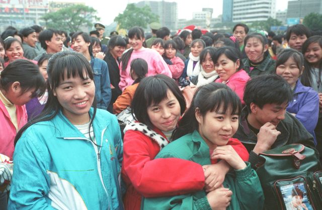 1995年,廣州火車站的打工妹。(新華社記者 陳學(xué)思 攝)