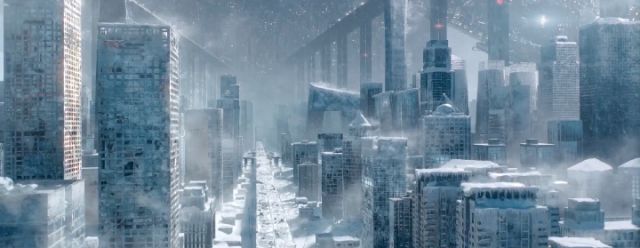 在預(yù)告片里,災(zāi)難來臨之際,未來的北京和上海成為冰封的世界,東方明珠塔被凍結(jié)在了皚皚冰原之中。影評人不僅驚嘆于高水平的特效制作,更感慨中國情境下的標志性元素和敘事風(fēng)格。
