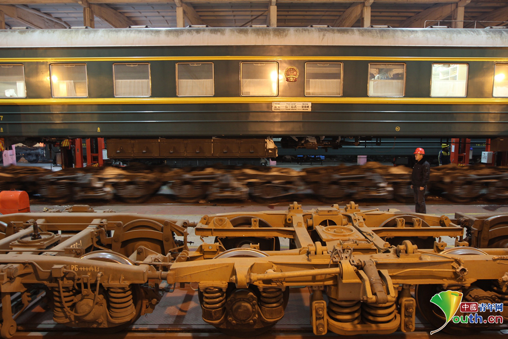 康亞斌和同事們所在的聯(lián)運(yùn)檢修車間擔(dān)負(fù)著北京至烏蘭巴托、北京至莫斯科以及呼和浩特至烏蘭巴托等6趟國際旅客列車換輪任務(wù),還要對這些車輛重要部件進(jìn)行定期檢修。