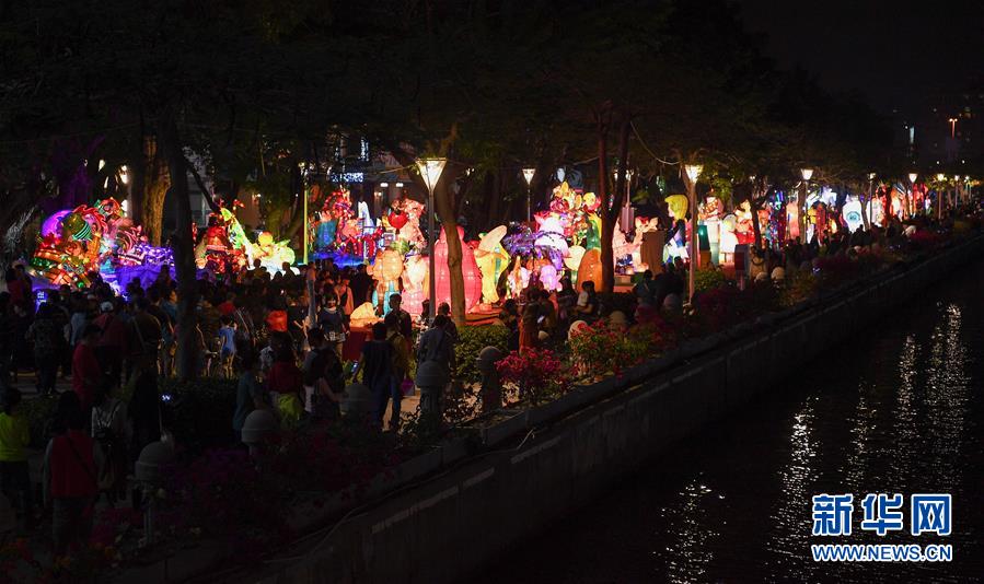 這是2月10日在高雄愛(ài)河畔拍攝的燈會(huì)現(xiàn)場(chǎng)。新華社記者 李響 攝