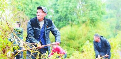 塔水村通往后山的路荊棘叢生,曹揚成堅持義務(wù)清理數(shù)年,在他的帶動下年輕人紛紛參與。歐陽希攝/光明圖片