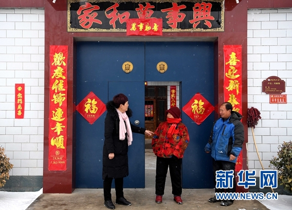 新春剛過(guò),瑞雪降中原。一片銀裝素裹間,一個(gè)暗紅色的門(mén)樓上“向陽(yáng)莊村”幾個(gè)金色大字格外醒目,門(mén)樓下葛樹(shù)芹正一邊掃雪一邊大聲地和村民們聊著天,歡聲笑語(yǔ)間滿滿的是幸福年味。