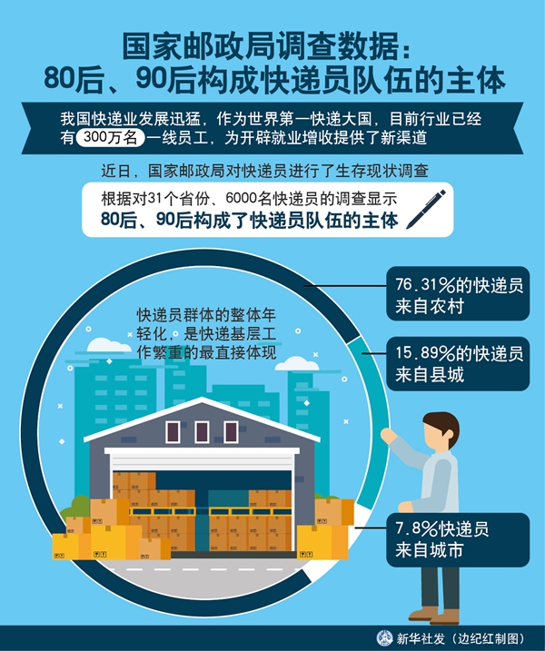 近日,國(guó)家郵政局對(duì)快遞員進(jìn)行了生存現(xiàn)狀調(diào)查,根據(jù)對(duì)31個(gè)省份、6000名快遞員的調(diào)查顯示,80后、90后構(gòu)成了快遞員隊(duì)伍的主體。快遞員群體的整體年輕化,是快遞基層工作繁重的最直接體現(xiàn)。76.31%的快遞員來(lái)自農(nóng)村,15.89%的快遞員來(lái)自縣城,僅有7.8%來(lái)自城市。